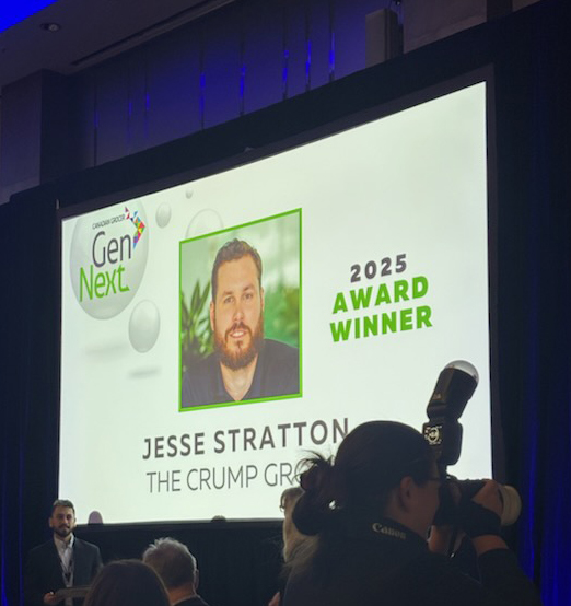 Mississauga, Ontario, Canada, Nov. 27, 2025 (GLOBE NEWSWIRE) -- The Crump Group is proud to announce that Jesse Stratton, Senior Vice President of Sales, has been named one of the 2025 Generation Next Award winners by Canadian Grocer. The award was announced on November 24 during the GroceryConnex event at the Fairmont Royal York in Toronto.